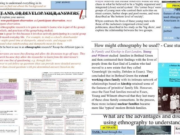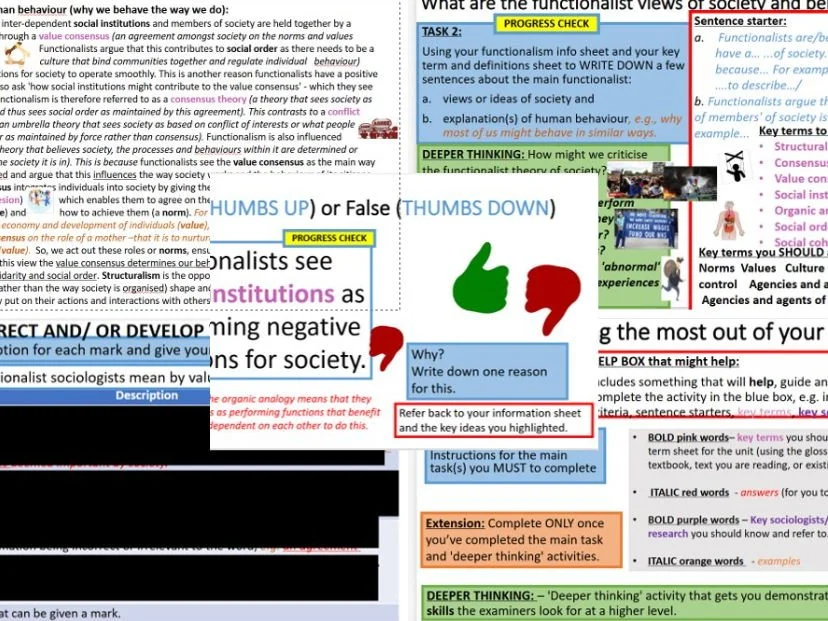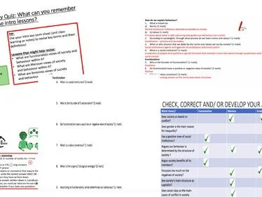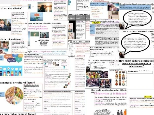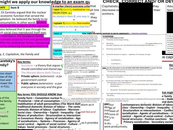 Categories: All AQA GCSE Sociology Intro lessons Education Topic 1 - Different types of school and education Topic 2 - Class differences in educational achievement Topic 3 - Ethnic differences in educational achievement Topic 4 - Gender differences in education (achievement and subject choice) Topic 5 - The role of education Topic 6 - Educational policy Family Topic 1 - Difference family types Topic 2 - The domestic division of labour Topic 3 - Functions of the family Topic 4 - Family diversity Topic 5 - Changing family roles and relationships Topic 6 - Contemporary family issues Research Methods Topic 1 - Intro to methods Topic 2 - Research methods Crime Topic 1 - The social construction of crime Topic 2 - Sources of statistical data on crime Topic 3 - Explanations of crime Topic 4 - Social Control Topic 5 - Patterns and trends in crime Topic 6 - Public debates on crime Social stratification Topic 1 - Social stratification Topic 2 - Social class Topic 3 - Life chances Topic 4 - Poverty Topic 5 - The Welfare state Topic 6 - Power relationships AQA A-level Sociology Education Topic 1 - Class differences in educational achievement (external factors) Topic 2 - Class differences in educational achievement (internal factors) Topic 3 - Ethnic differences in educational achievement Topic 4 - Gender differences in education (educational achievement, subject choice & experiences) Topic 5 - The role of education Topic 6 - Educational policy Assessment and feedback lesson Revision materials Family Topic 1 - Couples Topic 2 - Childhood Topic 3 - Functions of the family Topic 4 - Demography Topic 5 - Changing family patterns Topic 6 - Family diversity Topic 7 - Families and Social policy Research Methods Topic 1 - Intro to Research Methods Media Topic 1 - Ownership and control Topic 2 - Globalisation, the media and popular culture Topic 3 - The Social Construction of the News Topic 4 - Media representations of social groups Topic 5 - Media effects on audiences Topic 6 - New media Theory Functionalism (Topic 5) Marxism (Topic 6) Feminisim (Topic 7) Action theories (Topic 8) Developing exam techniques All AQA GCSE Sociology AQA A-level Sociology AQA AS/ A- level Sociology Research methods - Sampling methods £3.00 Purchase Added! AQA A-level Sociology Research methods - Practical, ethical and theoretical issues £3.00 Purchase Added! AQA A-level Sociology Research Methods - Introduction to research methods £3.00 Purchase Added! AQA A-level Sociology Theory and methods: Theory - Action theories (Ethnomethodology)) £3.50 Purchase Added! AQA A-level Sociology Theory and methods: Theory - Action theories (Phenomenology) £5.50 Purchase Added! AQA A-level Sociology Theory and methods: Theory - Action theories (Symbolic interactionism) £3.50 Purchase Added! AQA A-level Sociology Theory and methods: Theory - Action theories (Social Action Theory) £5.50 Purchase Added! AQA A-level Sociology Theory and Methods: Theory - Feminism £5.00 Purchase Added! AQA A-level Sociology Theory and Methods: Theory - Two types of Marxism/ Neo-Marxism ( Neo-Marxist theories - Humanistic and Structural Marxism) £5.00 Purchase Added! AQA A-level Sociology Theory and Methods: Theory - Traditional Marxism (Karl Marx) £6.50 Purchase Added! AQA A-level Sociology Theory and Methods: Theory - Functionalism £5.00 Purchase Added! AQA A-level Sociology Media: New media - Significance of the new media in contemporary society £4.50 Purchase Added! AQA A-level Sociology Media: New media - The impact the new media have had on traditional/ old media £4.50 Purchase Added! AQA A-Level Sociology: Media - Who uses the new media? £3.00 Purchase Added! AQA A-level Sociology: Media - What are the main features of the new media? £4.50 Purchase Added! AQA A-level Sociology - Media: Media violence effects on audiences £4.00 Purchase Added! AQA A-level Sociology Families: Social policy - The New Right's influence on UK family policy £1.50 Purchase Added! AQA A-level Sociology Family:Families and Social policy-Perspectives & a comparison of family policy £4.50 Purchase Added! AQA A-level Sociology Family: Family diversity - Postmodernist views of the family £5.50 Purchase Added! AQA A-level Sociology Family: Family diversity - Modernist views £5.50 Purchase Added! AQA A-level Sociology Families: Changing Family Patterns (Same sex, One-person, Step families, Childbearing & Ethnic diff) £1.50 Purchase Added! AQA A-level Sociology Families: Changing family patterns (Lone-parent families) £4.00 Purchase Added! AQA A-level Sociology Family: Changing family patterns (Cohabitation) £3.50 Purchase Added! AQA A-level Sociology Families: Changing family pattern (Marriage) £2.50 Purchase Added! AQA A-level Sociology Families: Changing family patterns (Divorce) £3.50 Purchase Added! AQA A-level Sociology Families: Demography - Migration £5.00 Purchase Added! AQA A-level Sociology Families: Demography - The ageing population £5.50 Purchase Added! AQA A-level Sociology Families: Demography - Deaths £3.50 Purchase Added! AQA A-level Sociology Families: Demography - Births £3.00 Purchase Added! AQA A-level Sociology Families: Theories of the family – Personal life perspective of the family £3.00 Purchase Added! AQA A-level Sociology Families: Theories of the family – Feminist views of the family (UPDATED) £4.20 Purchase Added! AQA A-level Sociology Families: Theories of the family – Marxist functions of the family £5.00 Purchase Added! AQA A-level Sociology Families: Theories of the family – Parson’s view of the family £4.50 Purchase Added! AQA A-level Sociology Families: Theories of the family - Murdock’s four functions of the family £3.20 Purchase Added! AQA A-level Sociology Families Topic 2 Childhood– The future of childhood £3.50 Purchase Added! AQA A-level Sociology Families Topic 2 Childhood- Has the position of children improved over time? £3.50 Purchase Added! AQA A-level Sociology Families Topic 2 Childhood– The h