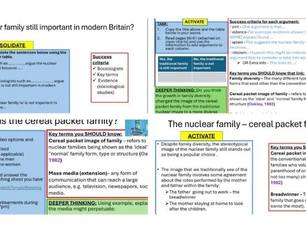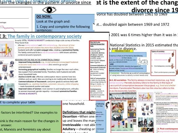 BUNDLE - AQA GCSE Sociology: Families Topic 5- Changes in the family